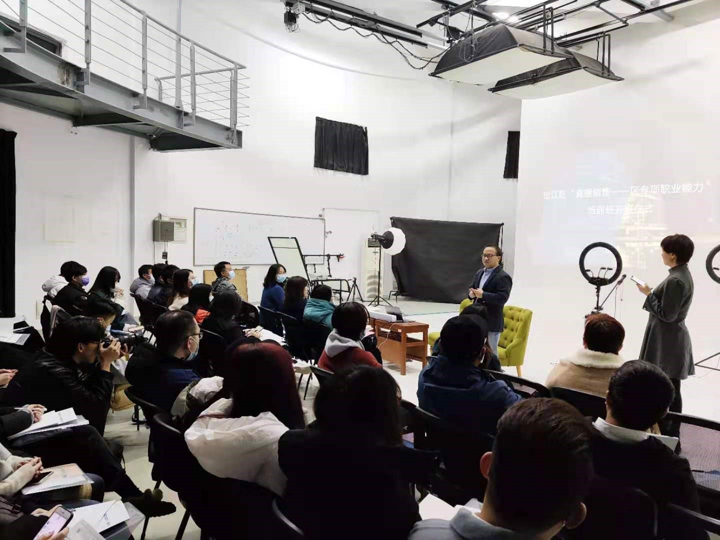 12月13日上午,松江区“直播销售——区专项职业能力”培训项目在我校松江校区艺术楼D楼举行了开班仪式。今年,人力资源社会保障部、市场监管总局等多部门联合发布一批新职业,其中在“互联网营销师”职业下增设了“直播销售员”新职业信息。面对新职业的形成,为提高松江区新职业从业人员职业技能素质,加快形成新职业的人才培养体系,区人力资源社会保障局联合我校365英国上市网开设“直播销售(区专项职业能力)”培训项目。该直播销售培训班首次尝试由大学承担政府的社会化培训项目,希望通过本期培训班进一步深化区校合作共育技能人才。
