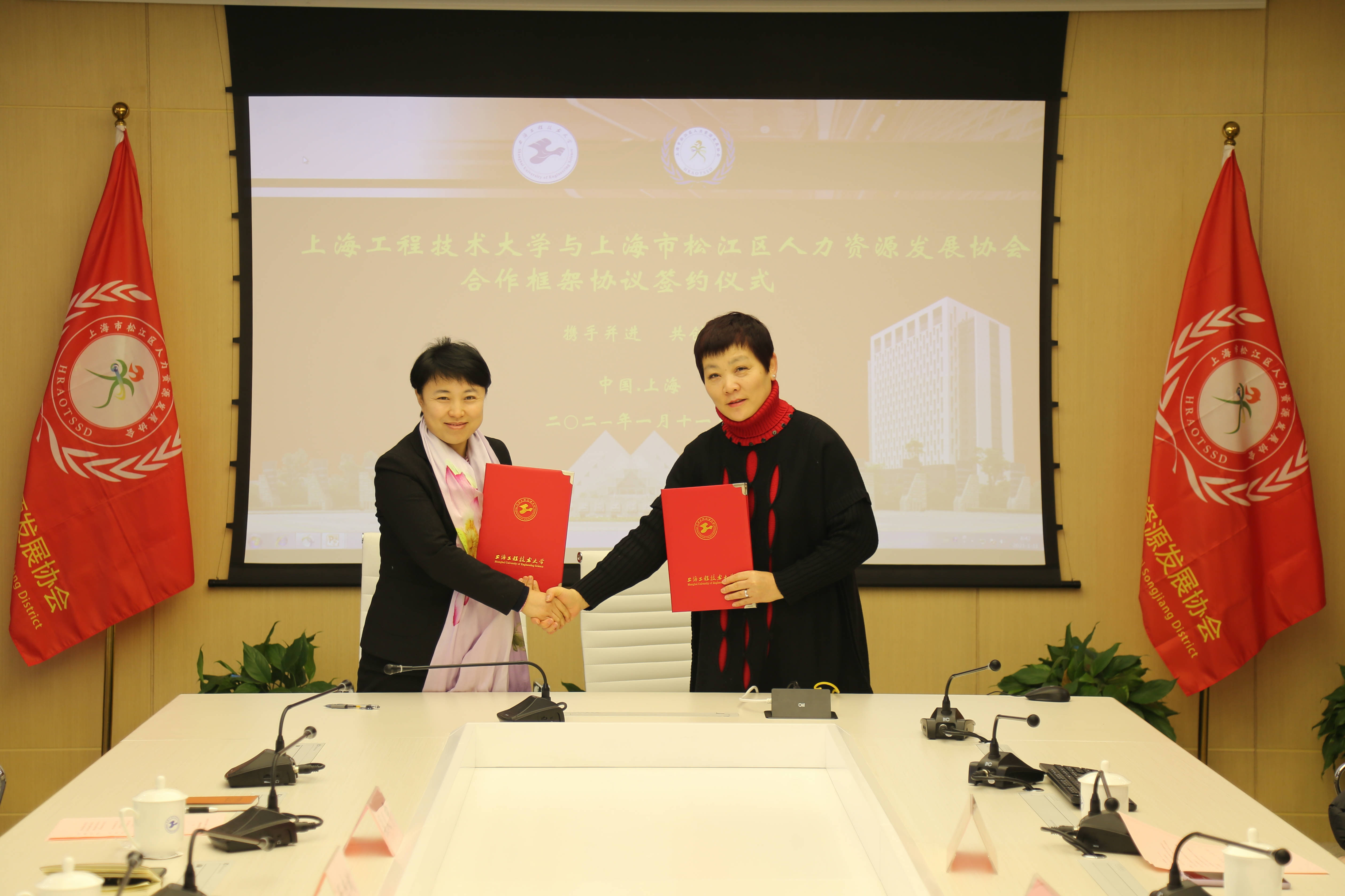 谢敏院长代表学校与松江区人力资源发展协会会长王晶签署了《合作框架协议》。签约仪式后,双方就会员企业员工学历提升教育、技能提升培训,共建学生实习基地以及我校青年教师走进企业会员单位挂职锻炼等四个具体落地项目的细则进行了深入探讨,并对后续工作分工及人员配置做了具体安排。