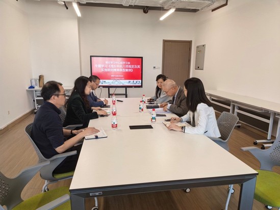 4月15日下午,继教产业联合党总支在长宁校区产教融合大楼1105会议室召开理论学习中心组学习会议,专题学习《违反中央八项规定及其实施细则精神典型案例》,全体党总支委员、党政班子成员参加会议,会议由党总支纪检委员彭文豪主持并领学。