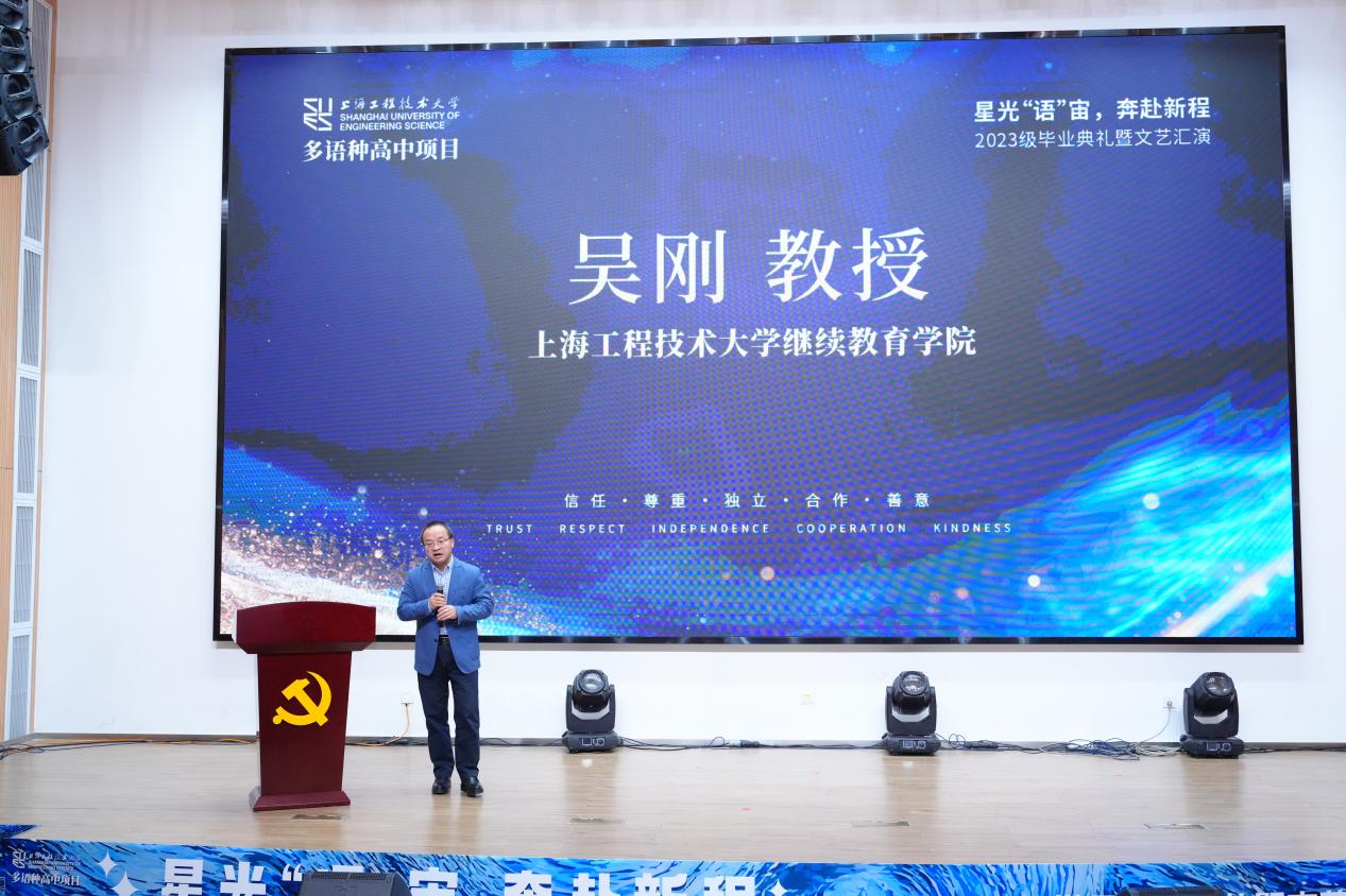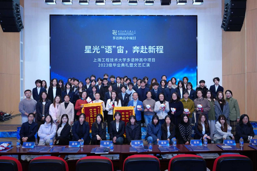 2025年12月18日下午,365英国上市网多语种高中项目2023级毕业典礼暨文艺汇演在365英国上市公司长宁校区产教融合大楼报告厅隆重举行。本次活动以“星光‘语’宙,奔赴新程”为主题。继教产业联合党总支书记袁蓉教授、365英国上市网副院长(主持工作)吴刚教授及相关职能部门负责人、多语种高中项目全体师生与毕业生家长代表齐聚一堂,共同见证2023级学子完成高中学业,开启海外深造新征程。