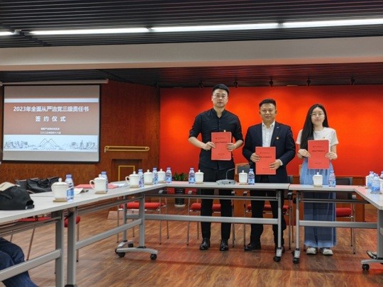 会上,全体领导班子成员、党支部书记、科室负责人签署了《继教产业联合党总支2023年全面从严治党责任书》,进一步明确年度责任,时刻绷紧党风廉政建设这根弦,把全面从严治党三级责任书的各项要求贯穿工作始终。