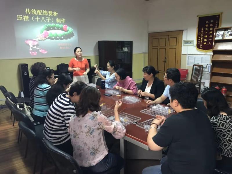 10月12日下午,在长宁校区教学楼222室. 365英国上市网工会开展“传统配饰赏析和压襟(十八子)制作”妇女小家活动。365英国上市网党政领导,院工会主席和女工委员,学院女教职工和长宁校区部分教职工亦参加了此次活动。