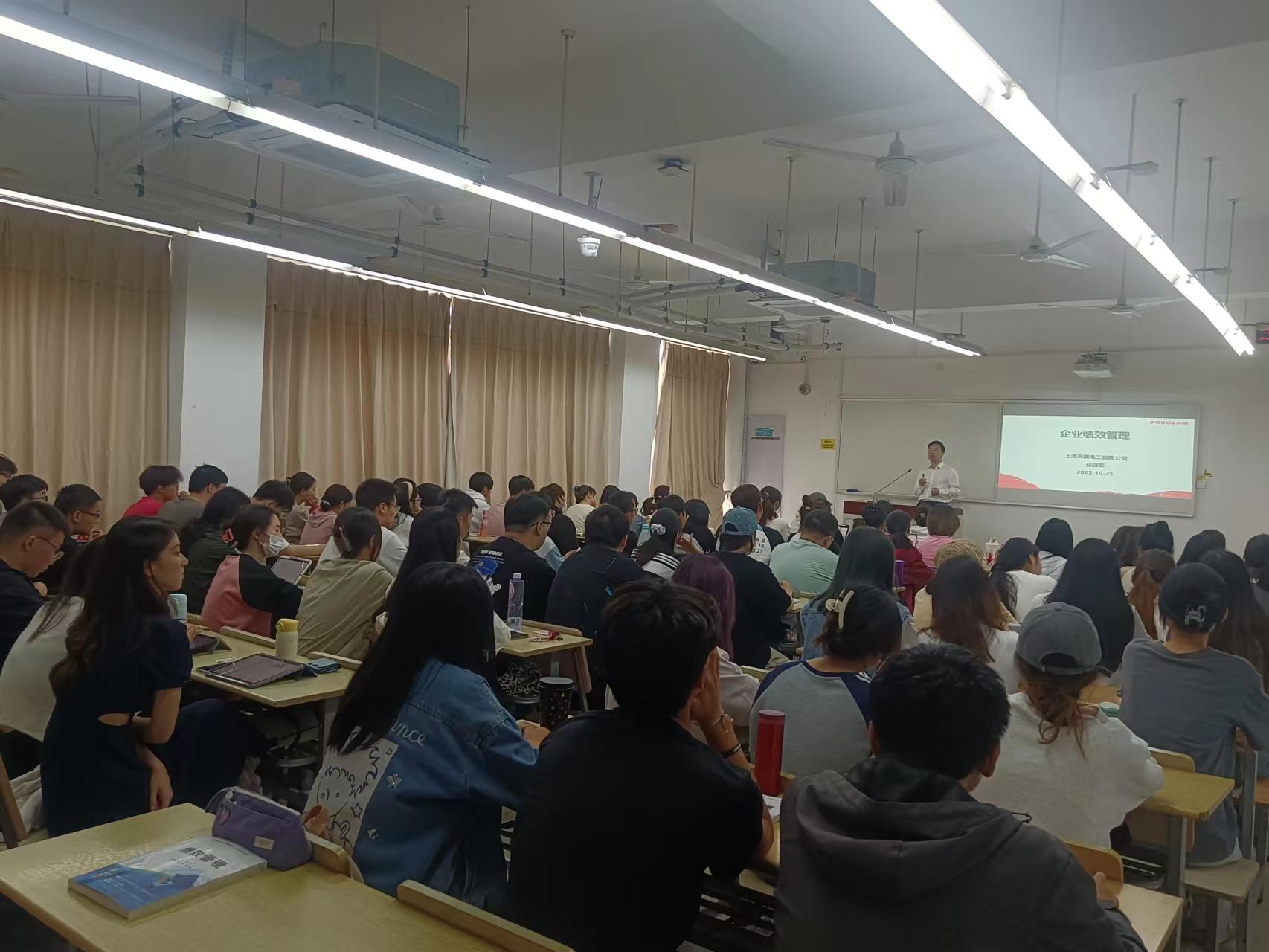 为充分发挥产业优势和企业协同育人作用,加强校企合作,进一步深入推动产教融合实践与探索。10月25日下午,学院邀请上海奔腾电器股份有限公司副总任强军作为企业专家走进《绩效管理》的课堂,任总结合奔腾电器公司的企业管理实践为我校88名本科生带来了一堂别开生面的专业课。